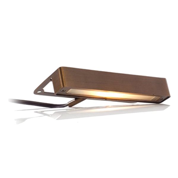 Undercover Hardscape Light is a precisely engineered low-profile fixture that fits under overhangs in a variety of applications. This durable low voltage light is constructed of cast brass with antique bronze finish. The attached mounting bracket facilitates installation under architectural and landscape features such as railings, capstones on retaining walls, counter tops (for outdoor kitchens), columns, and window ledges.