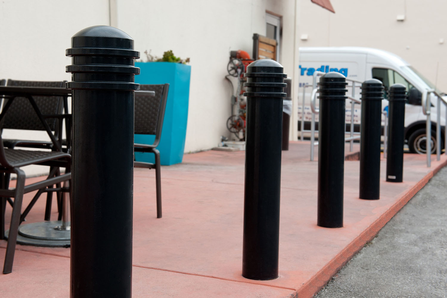 Modern and sophisticated, the R-7576 is suitable for any location. Made from ductile iron and powder coated for extra protection from wear and corrosion, the R-7576 can be installed as a stand-alone bollard, or over a steel pipe for added security. Bike arms to add a secure bike parking option for cyclists are also available.
