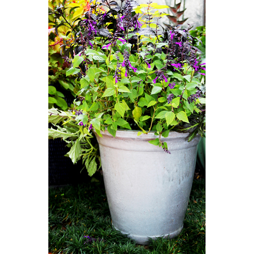 The classic crucible shape done in an olde world finish. With its small footprint and yet good height, it is a garden staple.