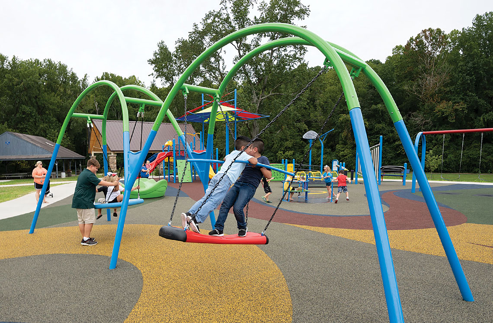 We're taking adventure to the air with the AirVenture Glider! Soaring through the air, wind on your face, feet planted firmly, whole body working to glide back and forth. Exhilarating and adventurous, this is the ride to have on your playground! Children will need to work together to get and keep the glider moving! While gliding, they will be working their upper and lower bodies and their core developing strength and balance. Where fun and development collide, AirVenture™ begins. Combine it with the Volito® Multi-User Swing in a Multi-Bay design, so children of all abilities can swing together in the same space. Patent Pending