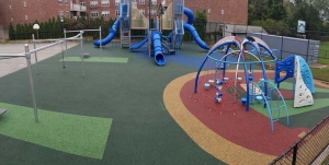 No Fault Safety Surface is the perfect rubber surface for park and recreational playgrounds! It is comprised of the highest quality EPDM or TPV rubber granules blended with a polyurethane binder, and is poured-in-place on-site. The result is an impact-absorbing, seamless and accessible safety surface that meets your fall height requirements.