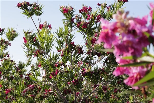 Chilopsis linearis 'Lopur' Desert Diva® is an outstanding selection of Desert Willow that was discovered at our Glendale nursery after many years of experimental plantings. Deep, emerald green leaves contrast nicely with velvety white buds. Most often, buds are a good indicator of flower color, but with this one there is a twist. The pearlescent buds open to a deep, dark, purple burgundy flowers creating a dramatic, over the top display. Dense, dark green leaf clusters create lovely, soft, dappled shade. The fragrant blossoms are a pollinator magnet and a favorite of our beekeepers here at Mountain States Nursery. So far, our current stock is showing little or no seed production which explains this plant's ability to be so abundantly floriferous.